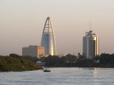 We met the rest of the group in Abu Dhabi airport for the onward flight to Khartoum. This was a fascinating flight as we got to see the landscape of the Sudan including the junction of the Atbara River and the Nile, and then the junction of the White and Blue Niles at Khartoum. We had our visas processed at the airport and then made our way to the Grand Holiday Inn which is located on the Nile front. This is a grand old hotel which has recently been renovated, which has a wonderful old world charm. The first afternoon we walked along the Nile and crossed over to Tuti Island, located where the two Niles join on the northern side of the city. The city has a series of new high-rise buildings which tower over the area.