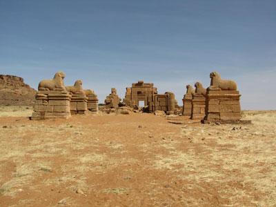 The following morning was dedicated to the temples at the foot of Jebel Barkal. Here there is a large temple dedicated to Amun, religious heart of Nubia for more than 1,000 years. In front of the ruins of the temple there are several granite rams which formed an avenue that led to the Nile. We also saw other temples in the area including the fascinating Temple of the Goddess Mut which was carved into the mountain side by King Taharka of the 25th Dynasty. It preserves superb reliefs of the king in adoration of the gods, and a scene showing Amun of Jebel Barkal as a ram-headed man inside the mountain. The local Museum contained artefacts from the excavations.
