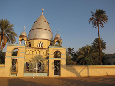 The next day we walked from the camp site to Old Dongola where we explored the Islamic bee-hive tombs and walked over to the ruins of the mediaeval town. Here we saw the outside of the Throne Hall and explored two Christian Coptic churches with marble columns. We then headed south to Khartoum, crossing the Nile via a bridge and then passing through a broad open desert. We arrived in Omdurman, the 19th Century capital of Sudan in the afternoon. We visited the market for tourists (Sudan only get about 2000 tourists a year!) and visited the house of the Khalifa and the mausoleum of the Mahdi. It was very pleasant to get back to our hotel in Khartoum and experience a hot shower after our days of camping.